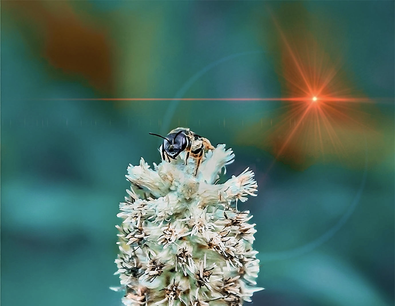 A little bee flies busily round and round