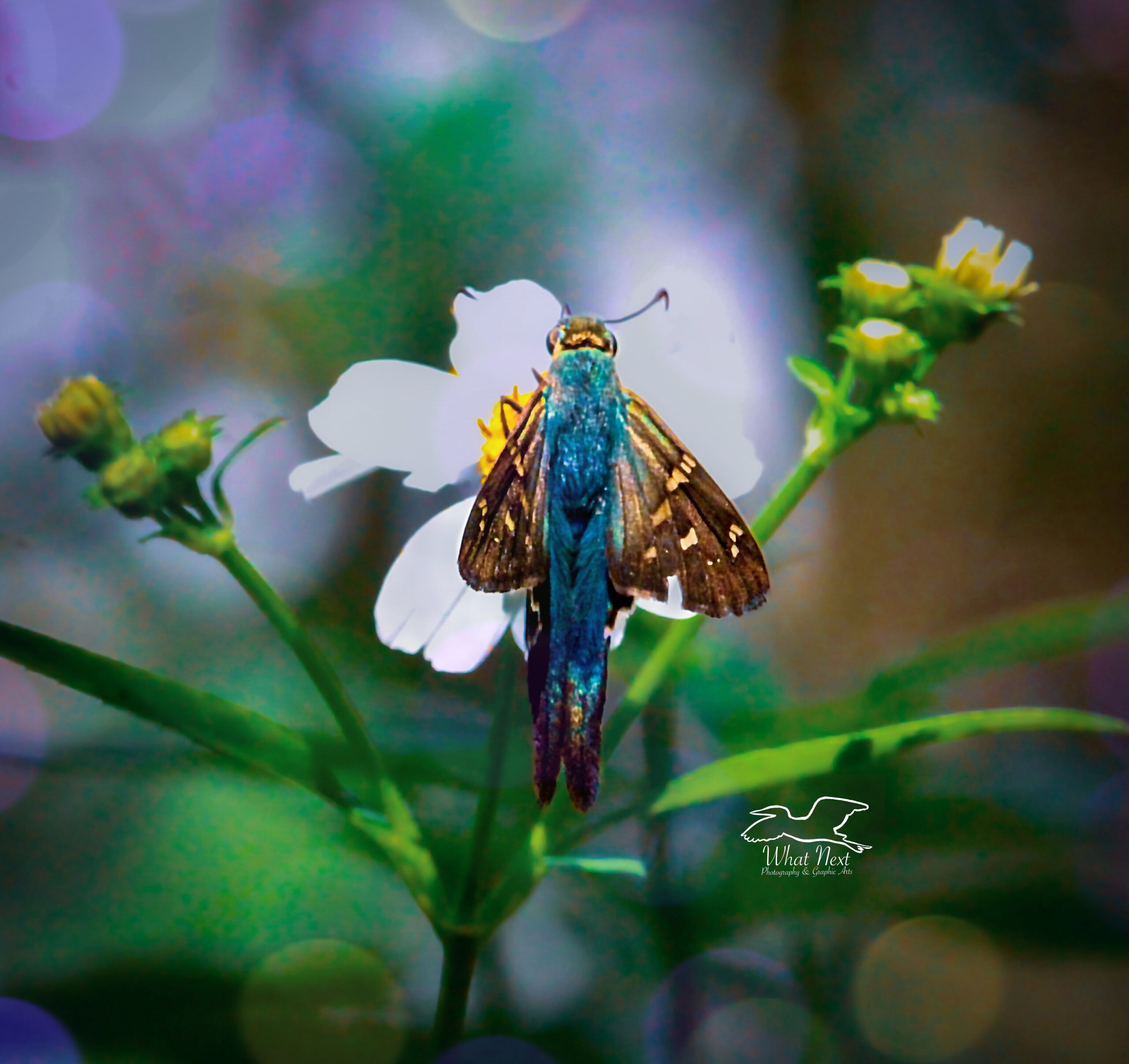 When the blackjack flowers start to bloom, they attract a lot of fall butterflies including some that are migrating through the area on their way further south. One of these migratory species is the bean leaf roller butterfly (Urbanus proteus). It’s a member of the skipper family and it’s pretty small, especially when compared to some of the huge swallowtail butterflies we see this time of the year. Most of the time when it feeds, it keeps its wings folded, and it seems to be rather drab. But when it opens those wings and reveals its beautifully colored back, you realize why it’s one of my favorites.