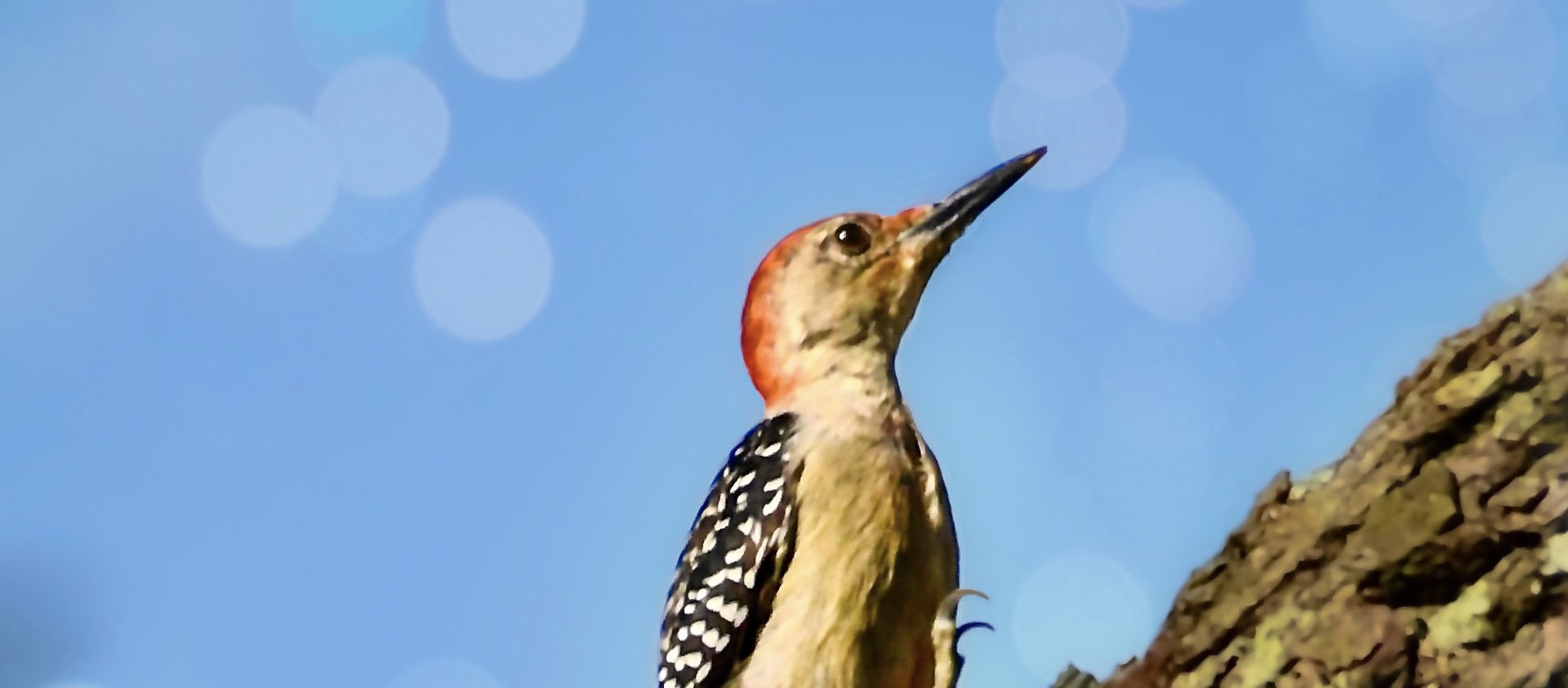 One of the things that I really love about watching birds is seeing how different species have adapted in different ways to fill various niches. They all have wings, beaks, and legs, but they use them so differently. Some fly thousands of miles, while others cannot fly at all. Some have strong, powerful beaks that can crush prey and tear meat, while others have minimal jaw strength and sip nectar or eat soft fruit. Woodpeckers, like this pretty little red bellied woodpecker (Melanerpes carolinus) have stout, sturdy legs that allow them to climb trees, even almost straight upwards, with minimal effort and sometimes with astounding speed. She was moving quickly up the trunk of one of my live oak trees while she searched for insects. She seemed very determined in this shot, and it paid off. She quickly reached her destination, a dead branch that is filled with insects and larvae. Once there she immediately began working away at a junction in the branch that seems to be a favorite area for all the woodpeckers.