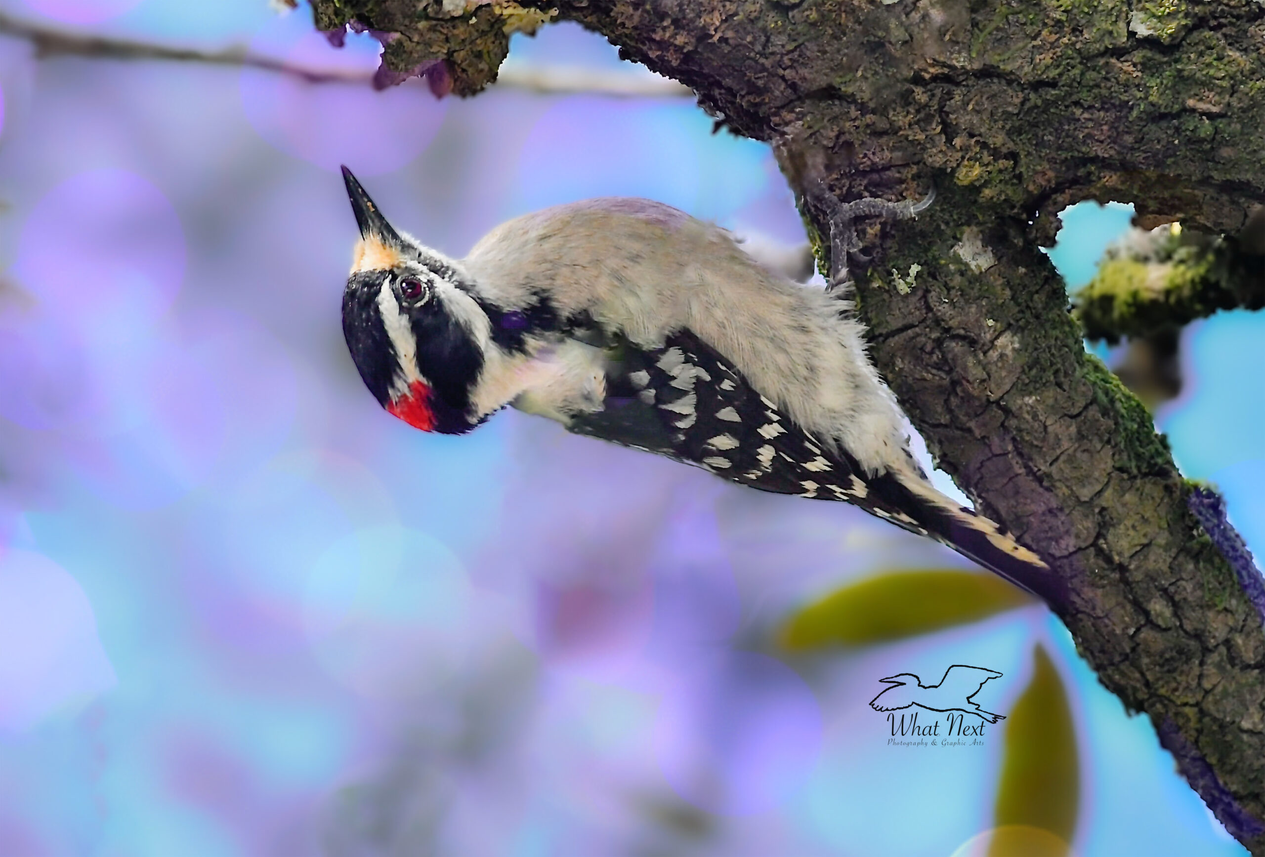 It is always a lot of fun to watch a downy woodpecker (Dryobates pubescens) at work. They tend to be very busy little birds that move rapidly from place to place as they search for insects under the bark and in the crevices of the trees. Part of the fun of watching them is that they behave almost as if gravity doesn’t exist. They move speedily up and down tree trunks and branches, make full circles around branches in any position, and glide almost effortless from one branch to another. The really incredible part is that they do all of these things in the blink of an eye. Keeping track of them is sometimes quite challenging, and just when you think you know where they are headed next, they suddenly change directions just to keep you on your toes. There is never a dull moment when there is a downy woodpecker around.
