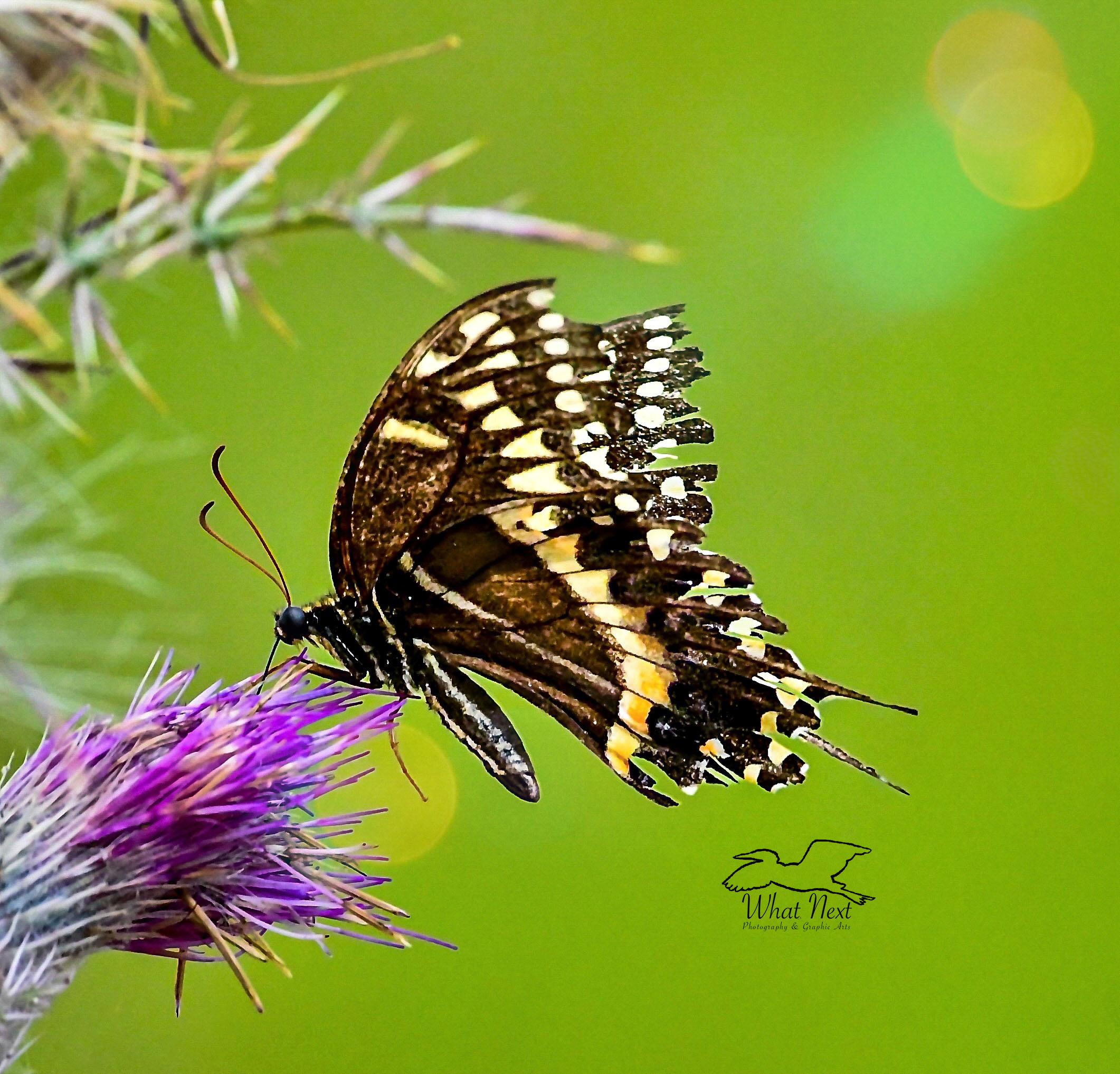 This is the time of year that the purple thistle flowers bloom and despite the fact that we are in a severe drought they are producing plenty of their beautiful and interesting blossoms. The flowers themselves are a lively p. inkish purple color when they are fairly new and they are filled with loads of nectar and pollen, making them an insects delight. While I took photos of this one (probably 8-10 minutes) I saw two types of bees, two types of butterflies, and a leaf bug. One of the butterflies was this tattered looking Palamedes swallowtail (Papilio palamedes). Even though its wings had seen better days, they were still quite strong and it flew just as well as it did when it first came out of the chyisalis. Animals, including insects, out in nature are surprisingly resilient, which is a trait that should definitely be admired.